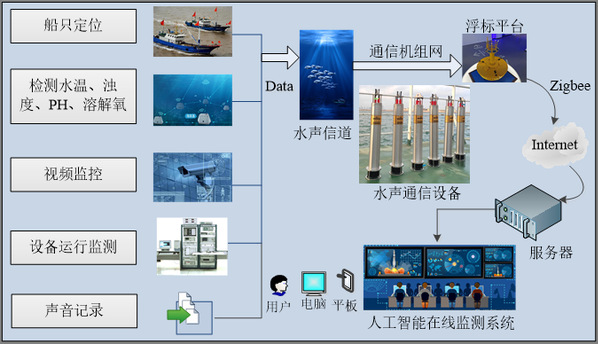 “智慧海洋牧场在线监测系统设计与应用”团队以“数据多跑路、人员少出海”理念,打造“智慧海洋牧场”的在线监测可视化平台,致力于助力传统牧场数字化转型和现代牧场建设。利用人工智能技术和水声通信技术参与海洋水文环境监测,提出了一套基于AIoT的海洋牧场在线监测系统,具有声音记录监测鱼群、海洋水文数据挖掘等功能,降低系统能耗、成本,实现对智慧海洋牧场的可视、可测、可控、可预警。