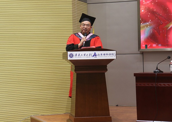 教师代表白泉向全体毕业生表示祝贺,回顾了大家的求学岁月,他希望同学们毕业后要锤炼一颗强大的内心,坚持砥砺奋斗,仍然保持求知若渴,追求卓越的品质和态度,以梦为马、不负韶华,工大(科院)永远是大家坚强的后盾。
